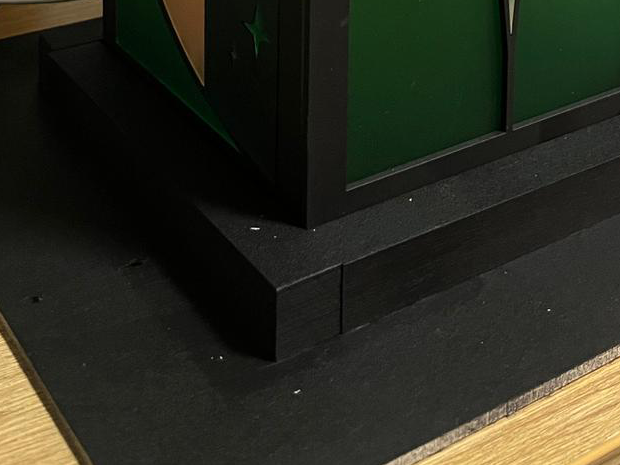 I had taped the panels together while cutting the hinges. As I was taking off the tape, a part of the star panel broke. I did panic initially as I didn't have any backup panels, but it was easily fixed with acrylic glue by attaching it back together.
