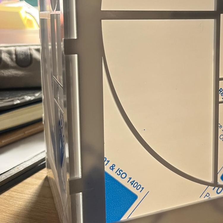 Since I didn't glue on top of a ventilated station due to some rules in the university workshop, the fumes from the superglue caused the glue to seep and spread away from the corners, making it visible when the light inside it turned on. For my final product photos, I fixed this with Photoshop to make it look more professional.